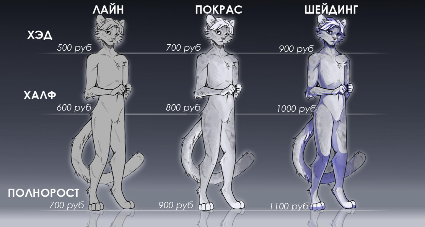 Цены распространяются на любое живое существо. Определите, что вам нужно - при себе желательно иметь референсы, арты или детальное описание. Чем больше примеров того, что вы хотите - тем лучше.ㅤ